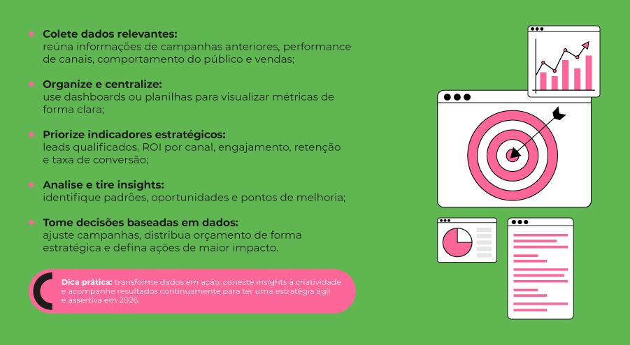 Entenda como colocar isso em prática no seu planejamento de marketing orientado a dados para 2026 na imagem abaixo: