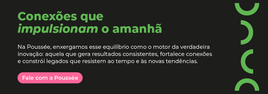 Na Poussée, enxergamos esse equilíbrio como o motor da verdadeira inovação: aquela que gera resultados consistentes, fortalece conexões e constrói legados que resistem ao tempo e às novas tendências.